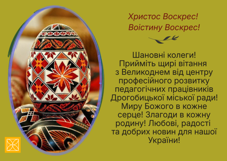 Центр професійного розвитку педагогічних працівників Дрогобицької міської ради вітає всю освітянську спільноту зі святом Великодня!
